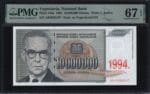YUGOSLAVIA 10 million dinara 1994 / Ivo Andrić / Overprint on 1993 banknote / PMG 67 EPQ
