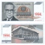 YUGOSLAVIA 10 million dinara 1994 Ivo Andrić / Overprint on 1993 banknote / UNC