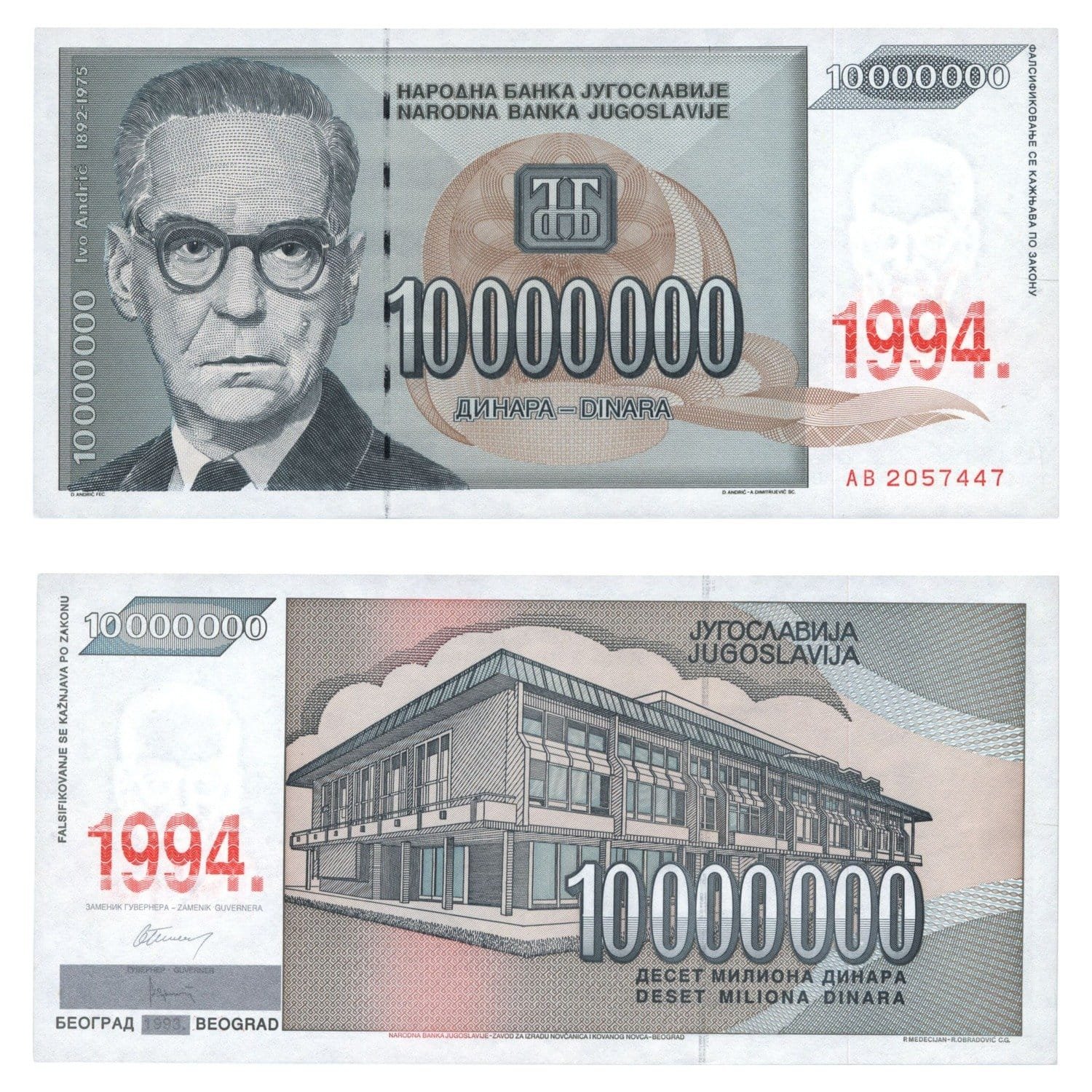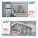 YUGOSLAVIA 10 million dinara 1994 / Overprint on 1993 banknote / UNC