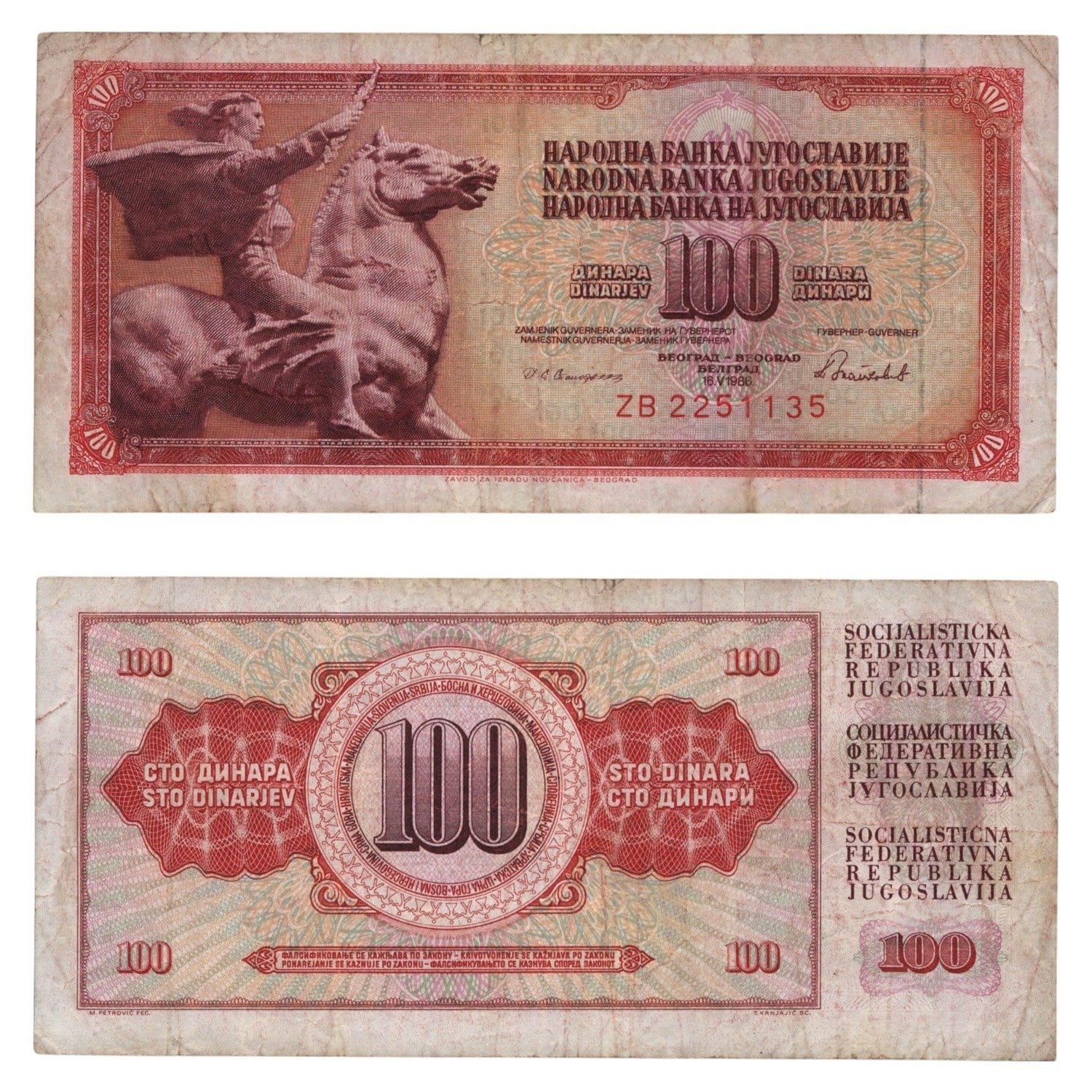 YUGOSLAVIA 100 dinara 1986 / Replacement series ZB / VF