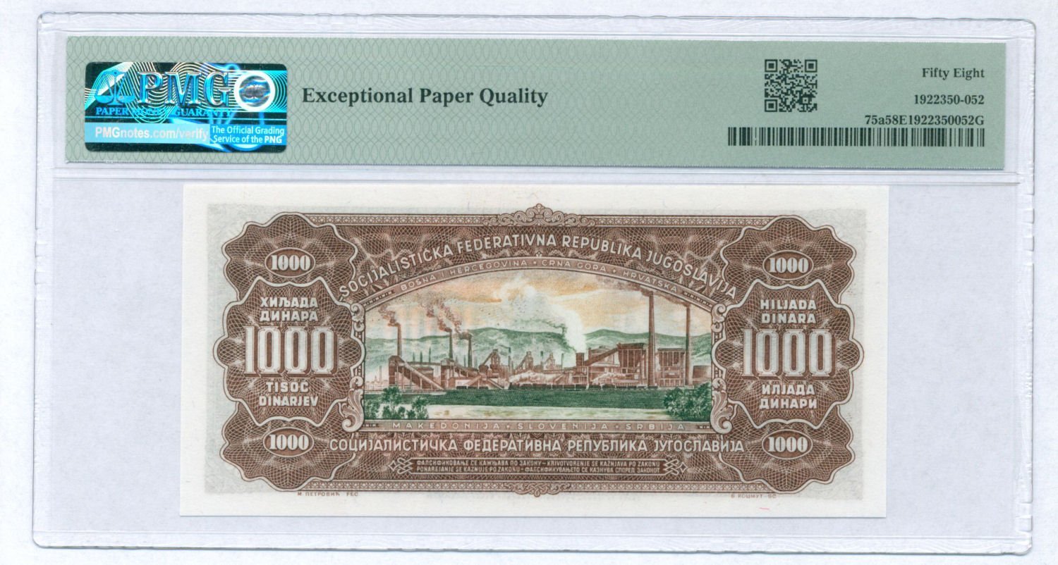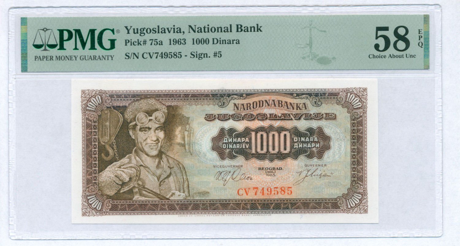 YUGOSLAVIA 1000 dinara 1963 PMG 58 EPQ