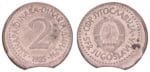 YUGOSLAVIA 2 dinara 1985 / Error: Off-center struck + clipped planchet / VF