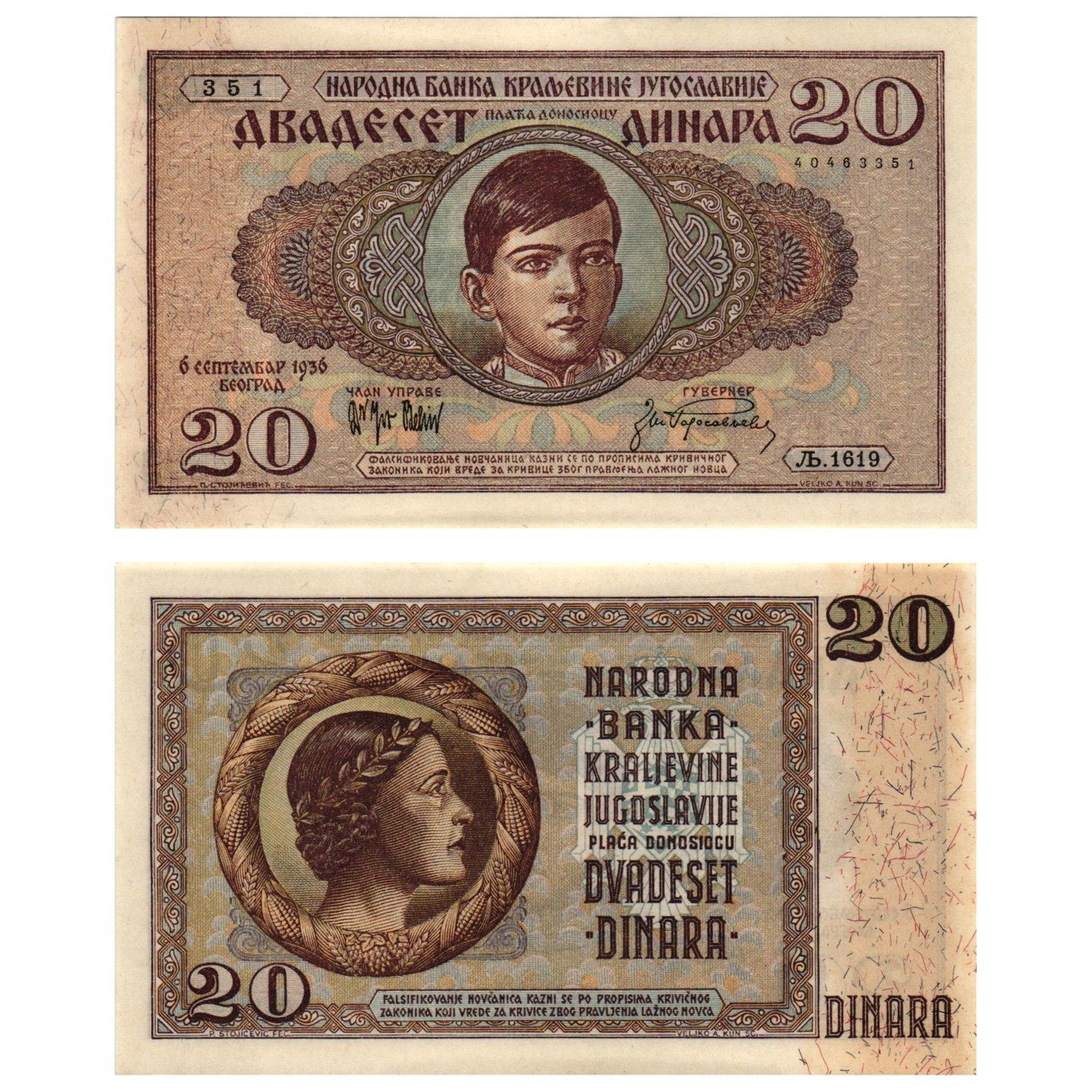 YUGOSLAVIA 20 dinara 1936 UNC-