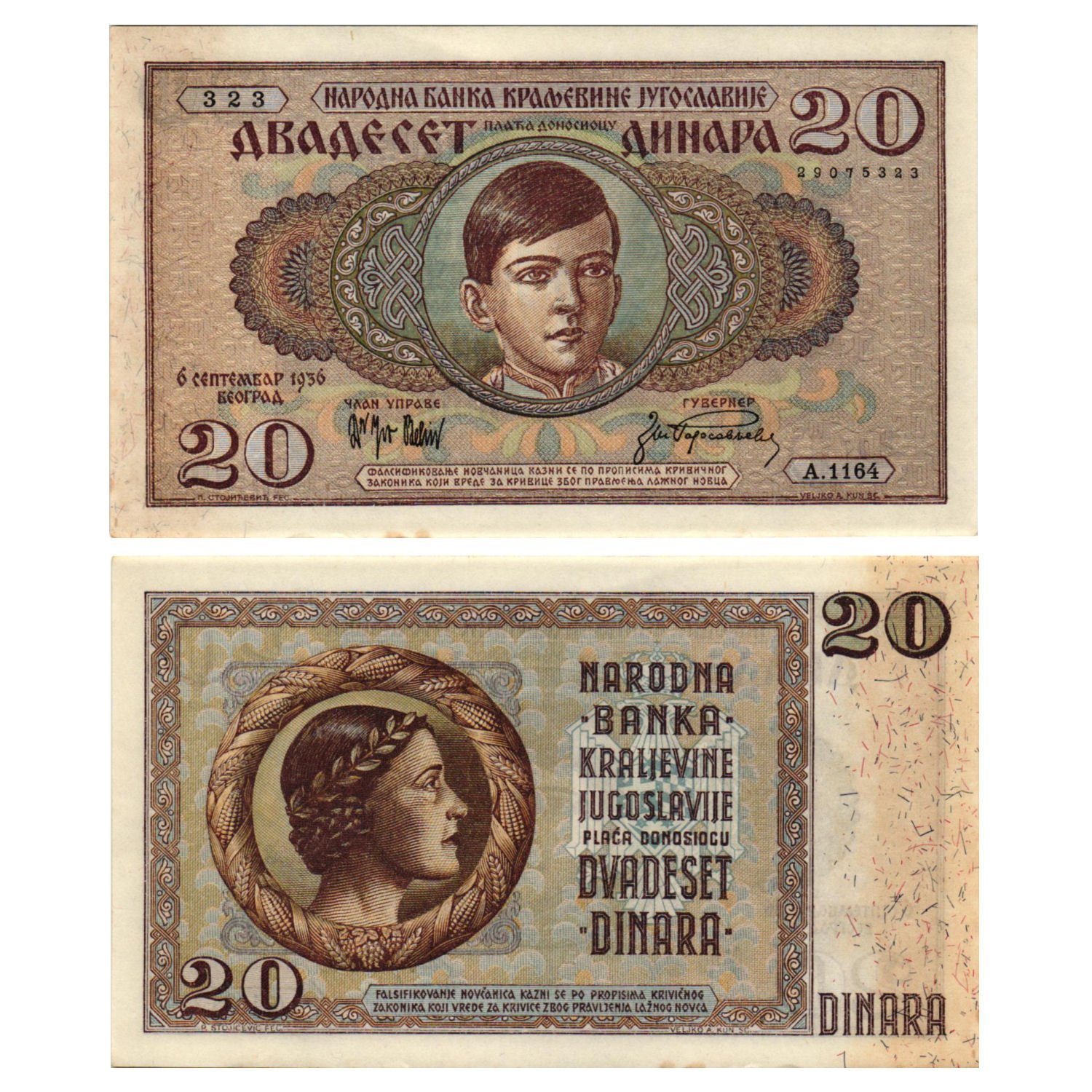YUGOSLAVIA 20 dinara 1936 XF-