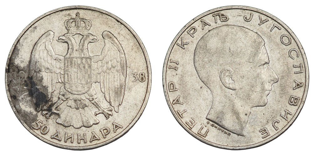 YUGOSLAVIA 20 dinara 1938 / Silver / F+