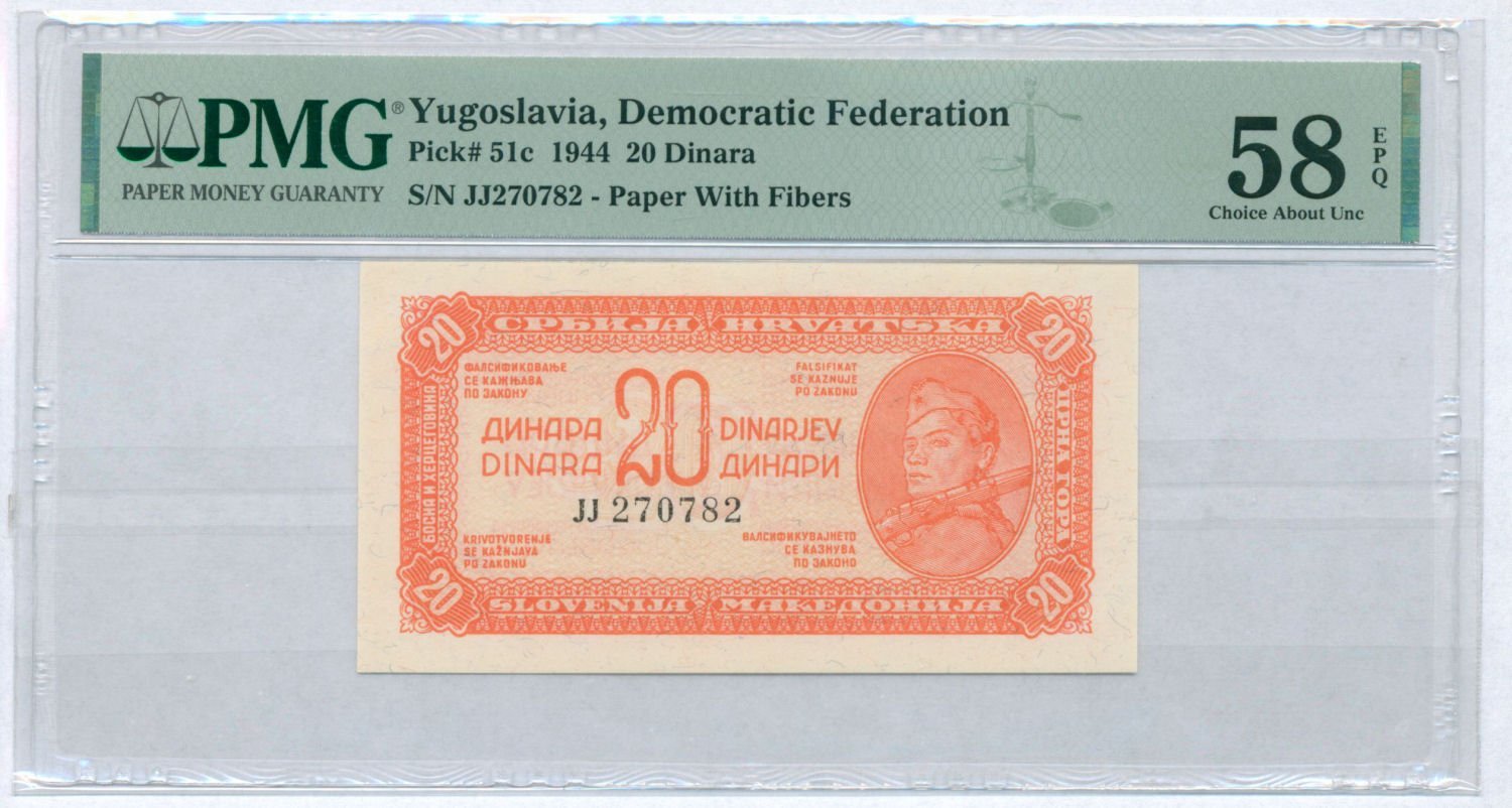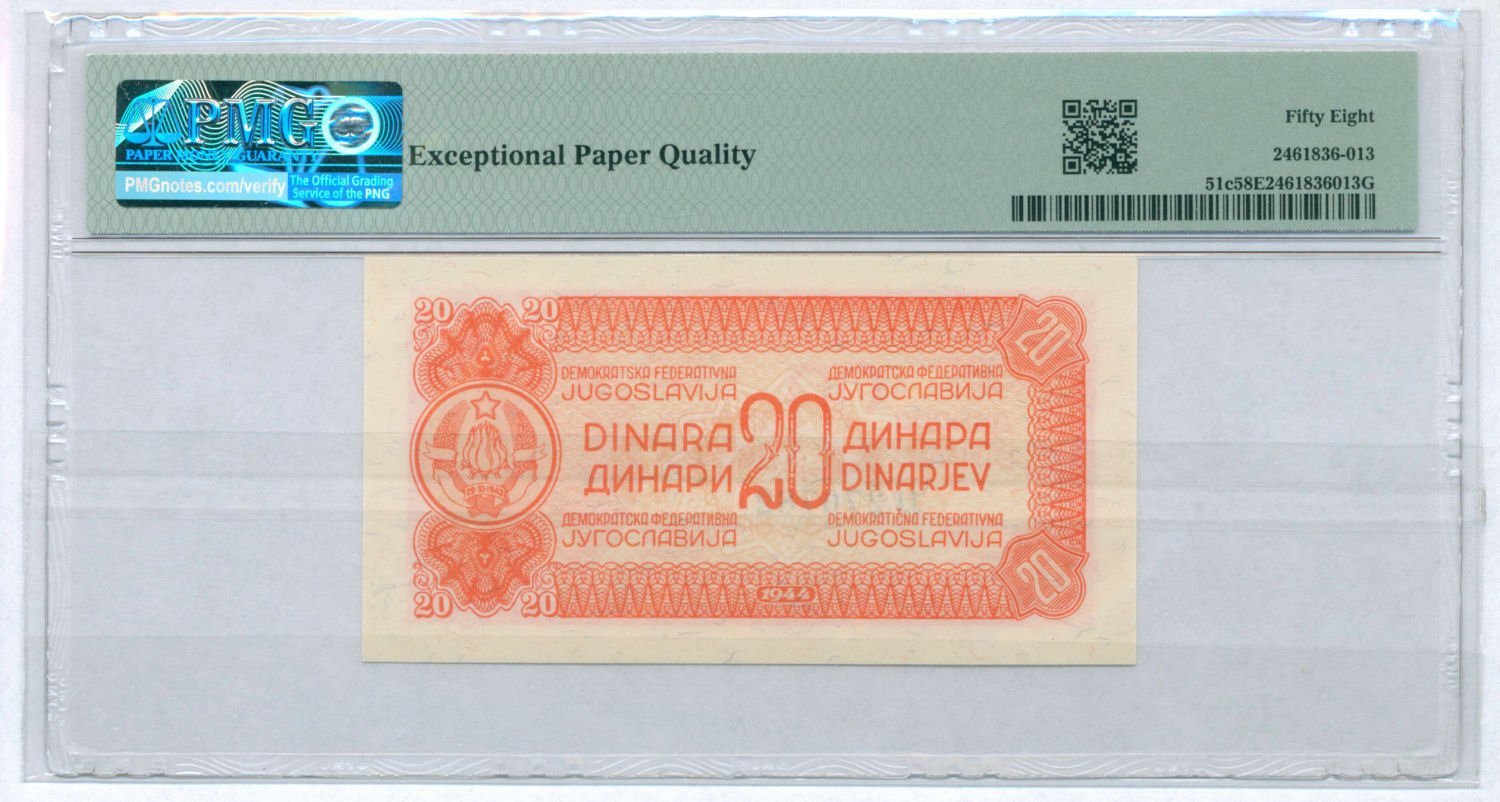 YUGOSLAVIA 20 dinara 1944 PMG 58 EPQ