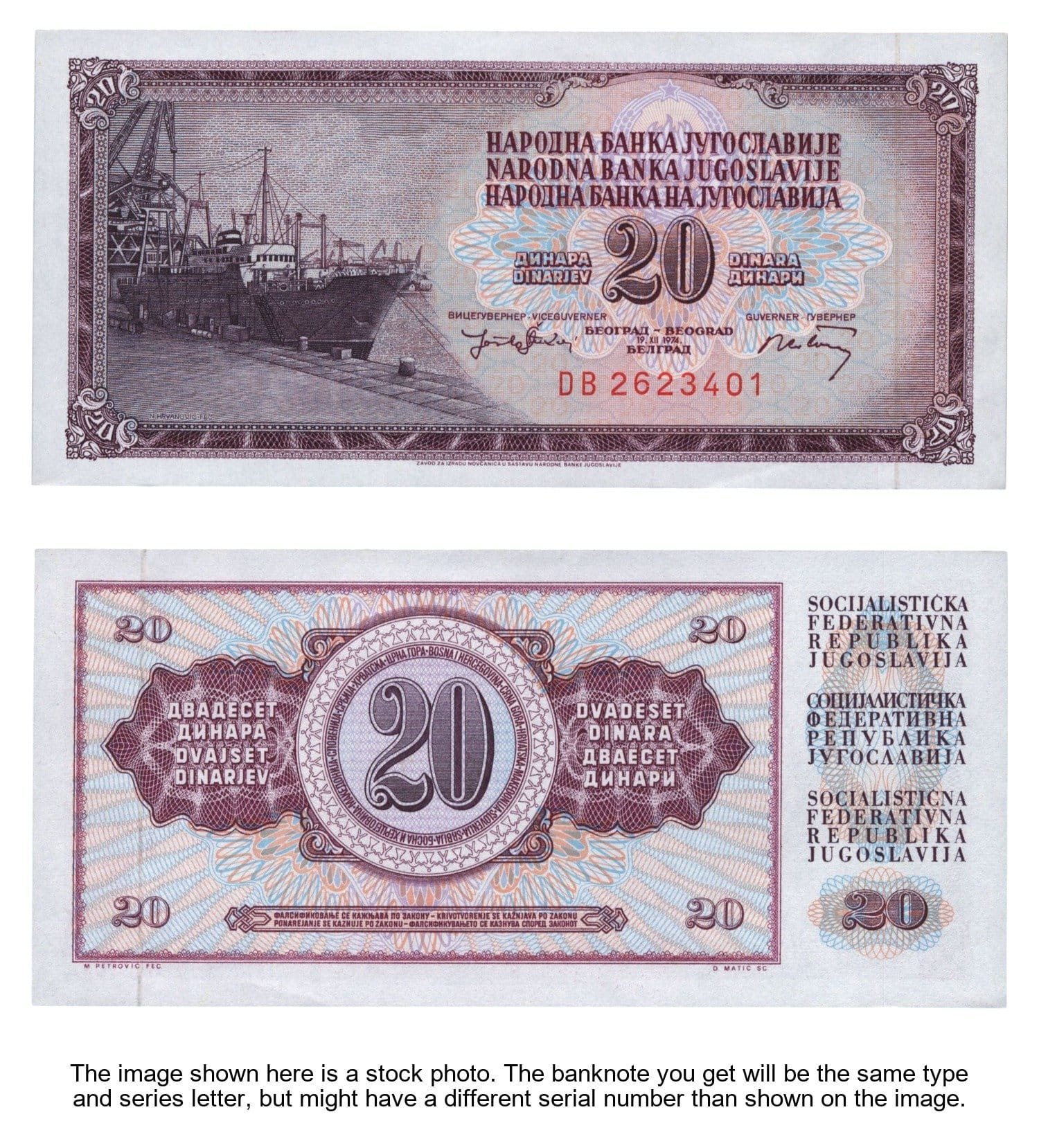 YUGOSLAVIA 20 dinara 1974 / DB series / 7 digits / UNC
