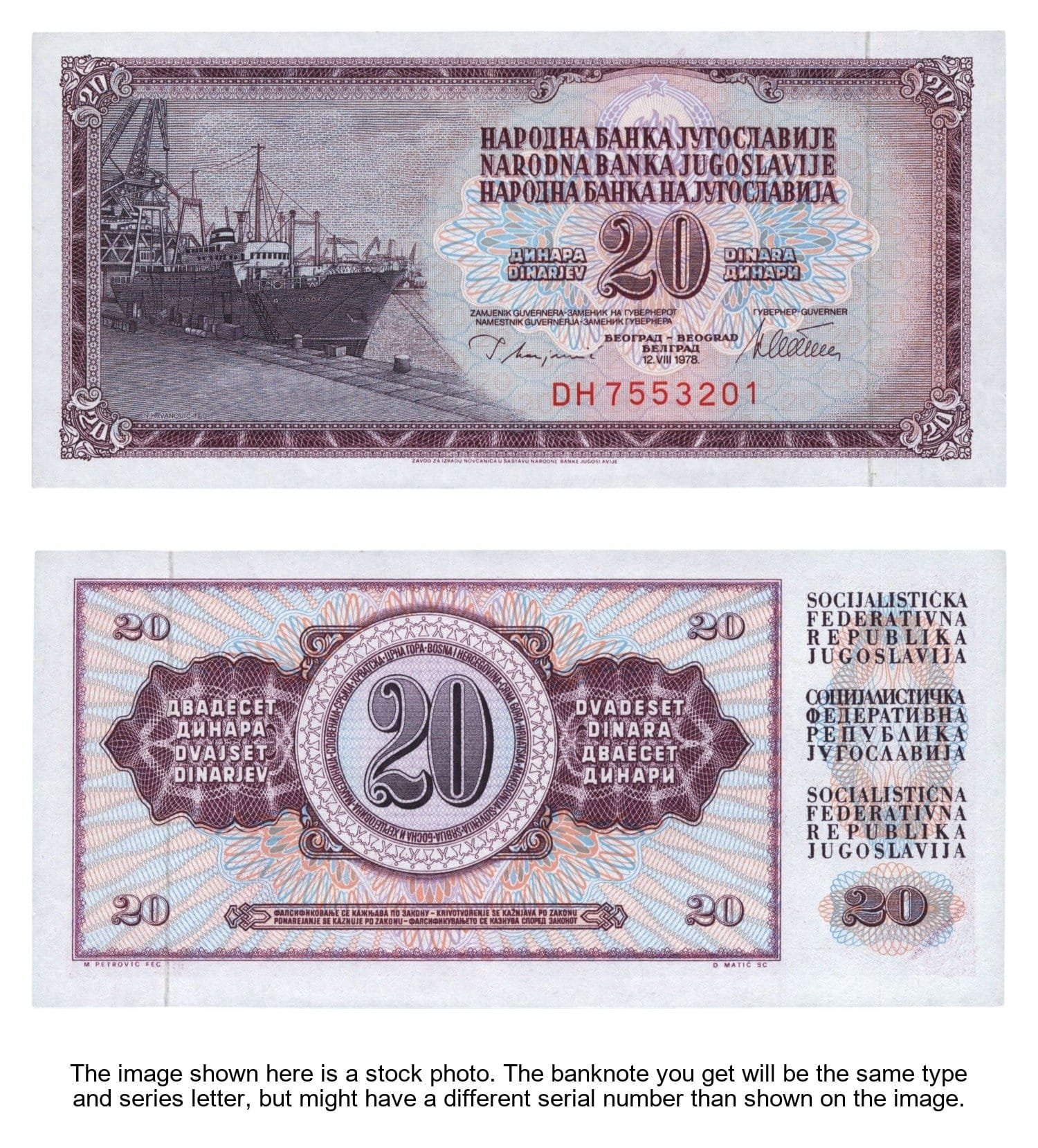 YUGOSLAVIA 20 dinara 1974 / DH series / 7 digits / UNC