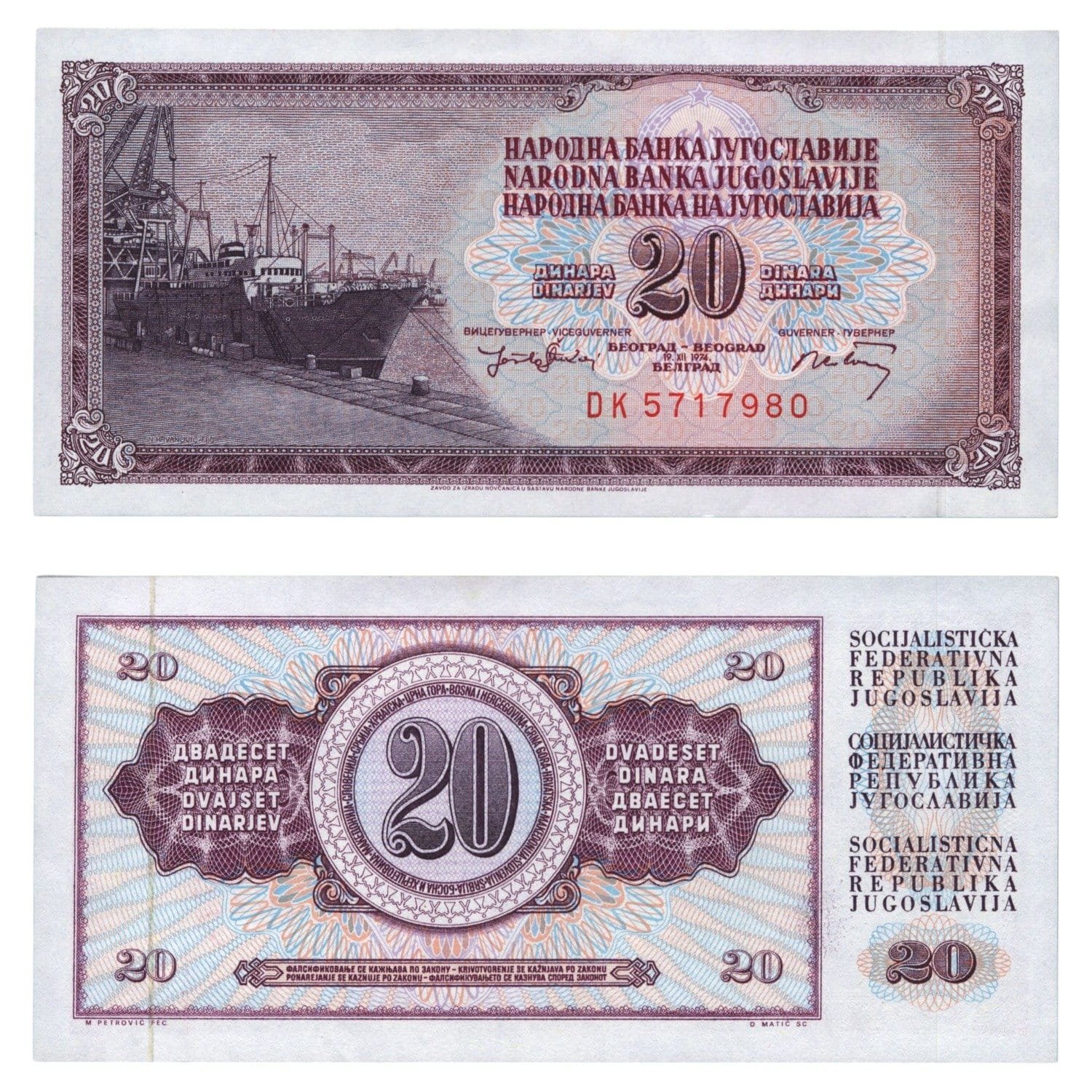 YUGOSLAVIA 20 dinara 1974 / DK series / 7 digits / UNC