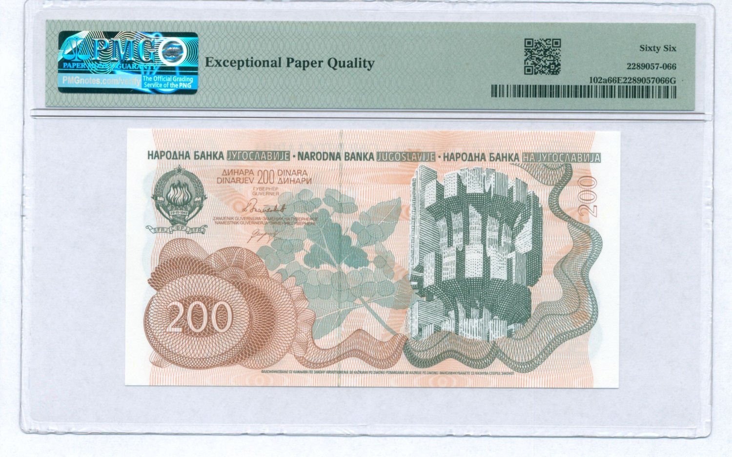 YUGOSLAVIA 200 dinara 1990 / Monuments series / PMG 66 EPQ