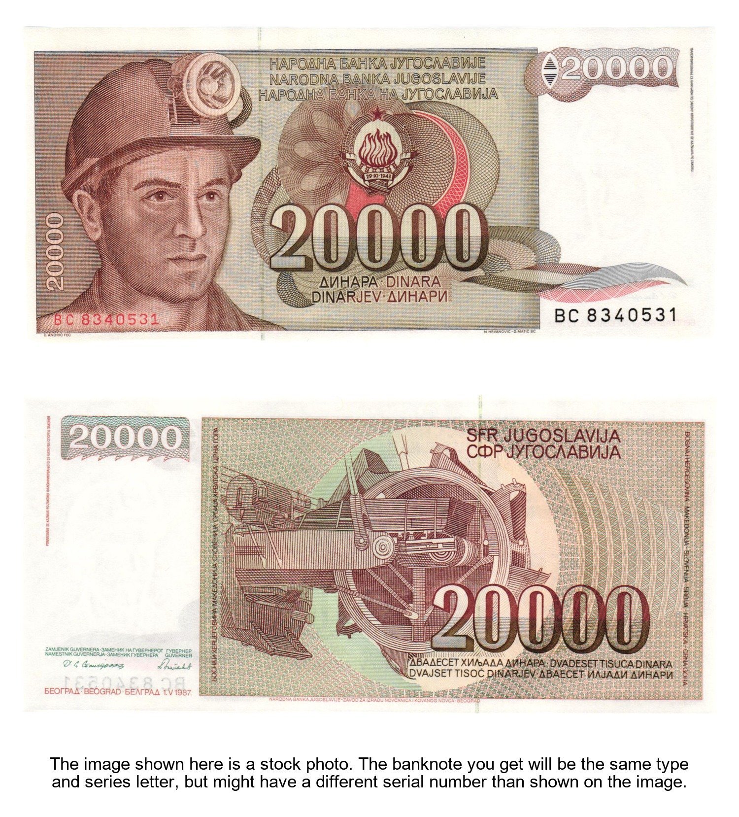 YUGOSLAVIA 20000 dinara 1987 / BC series / UNC