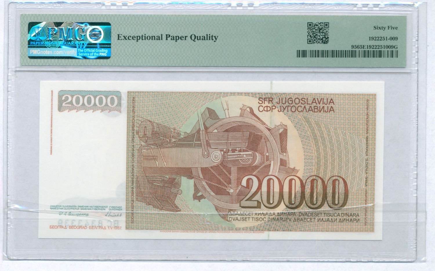 YUGOSLAVIA 20000 dinara 1987 / The Miner / PMG 65 EPQ