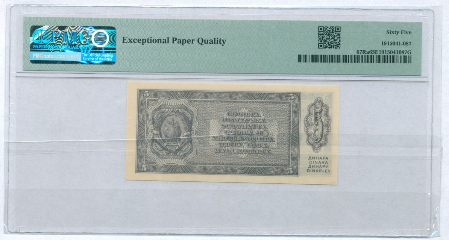 YUGOSLAVIA 5 dinara 1950 / Informbiro series / PMG 65 EPQ