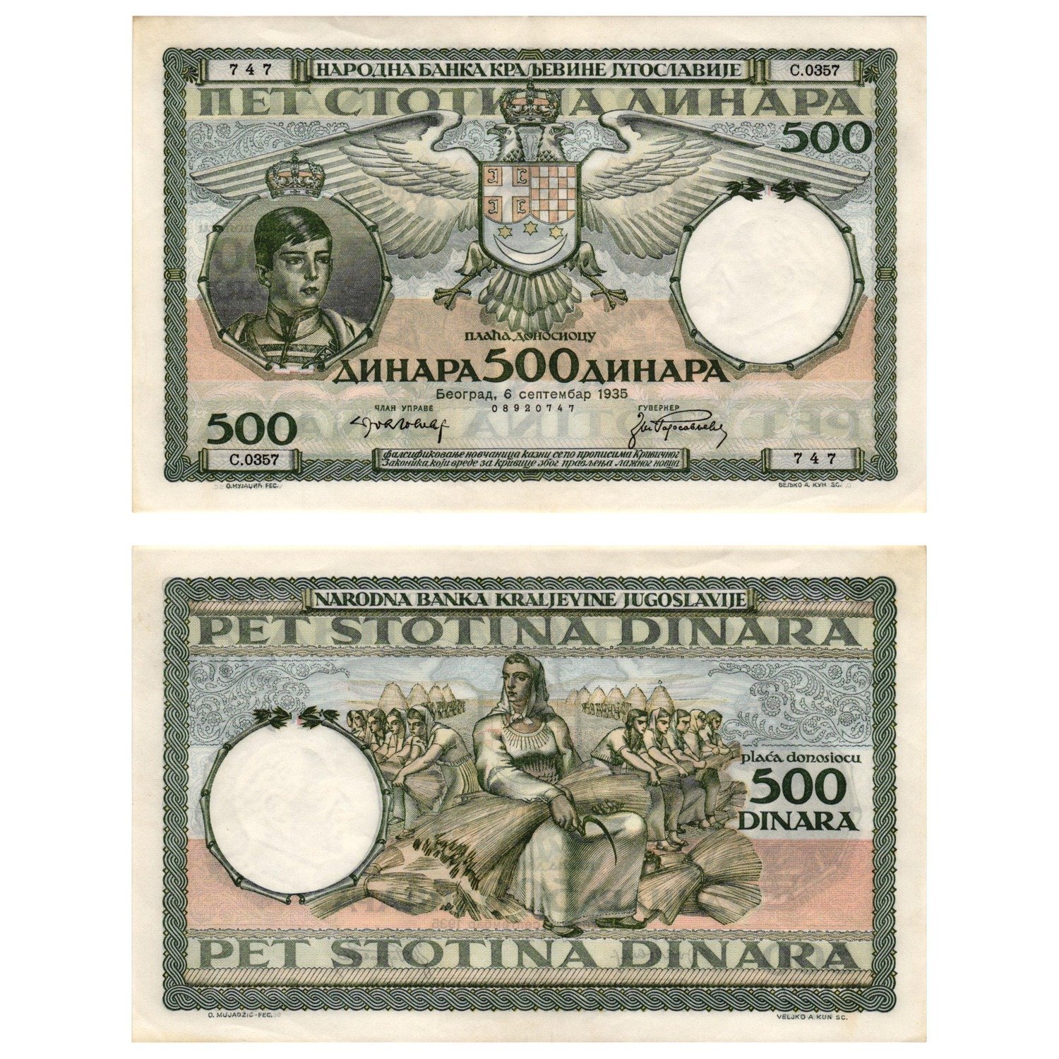 YUGOSLAVIA 500 dinara 1935 XF-