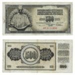 YUGOSLAVIA 500 dinara 1965 / Error: Extra ink over NER in GUVERNER / VF-