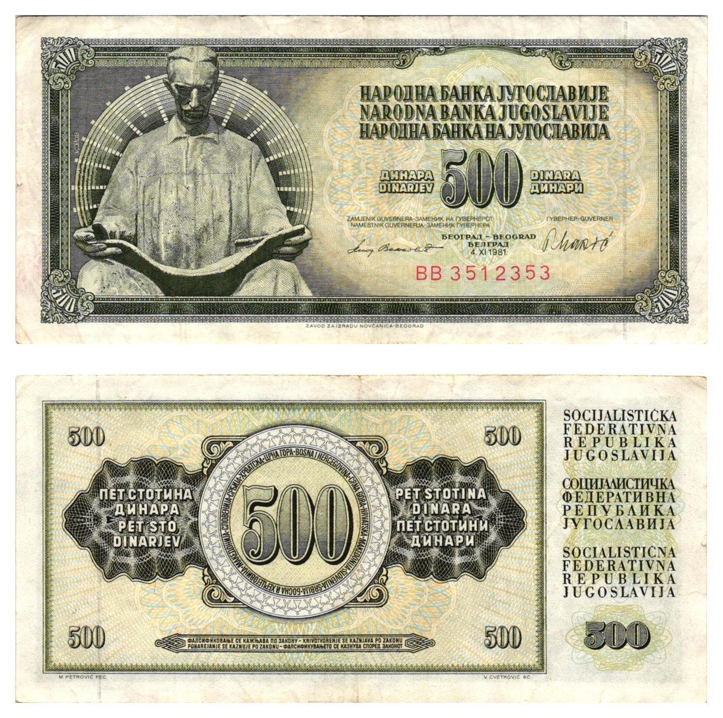 YUGOSLAVIA 500 dinara 1981 / Series BB / Nikola Tesla / VF
