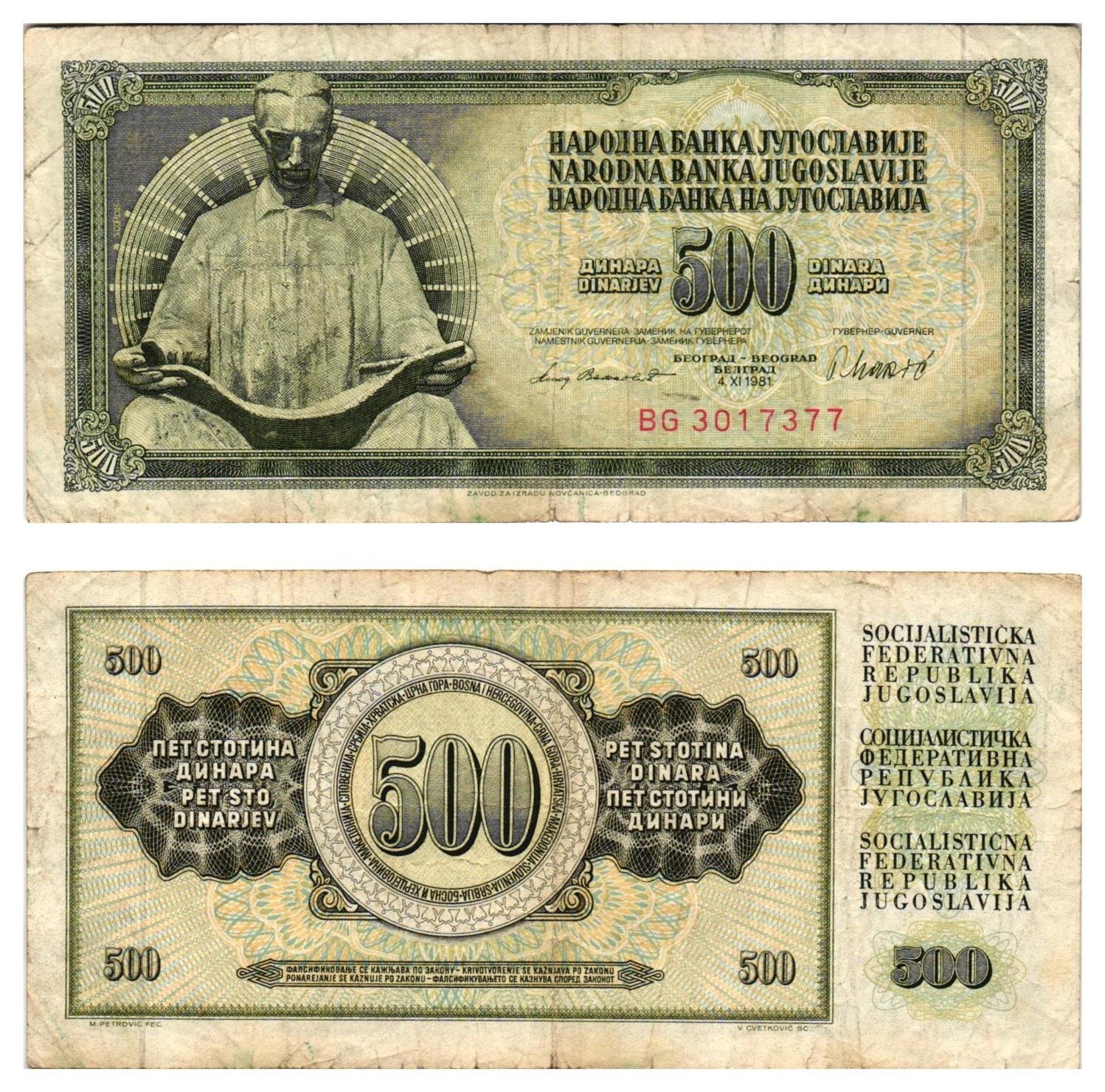 YUGOSLAVIA 500 dinara 1981 / Series BG / Nikola Tesla / VF-