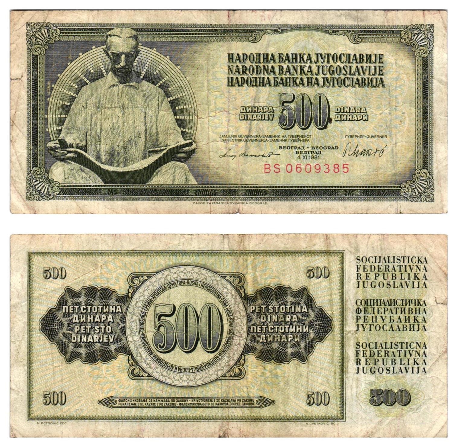 YUGOSLAVIA 500 dinara 1981 / Series BS / Nikola Tesla / VF-