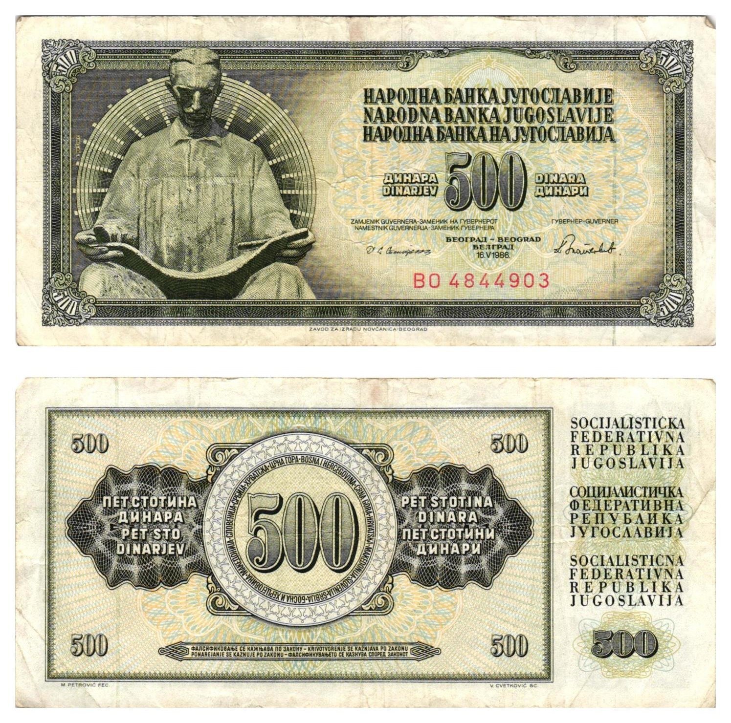 YUGOSLAVIA 500 dinara 1986 / Series BO / Nikola Tesla / VF