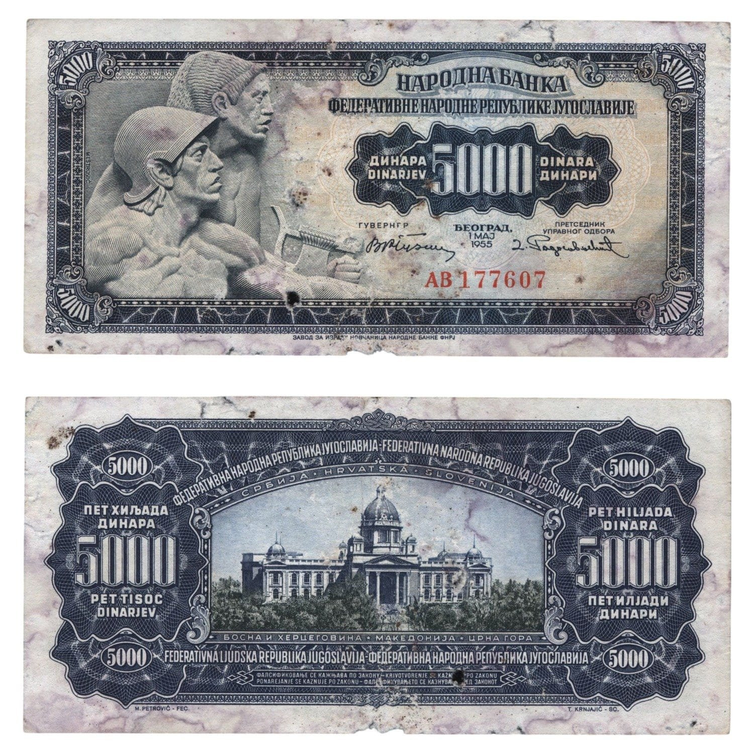 YUGOSLAVIA 5000 dinara 1955 / Without number 2 in lower right corner / VG-