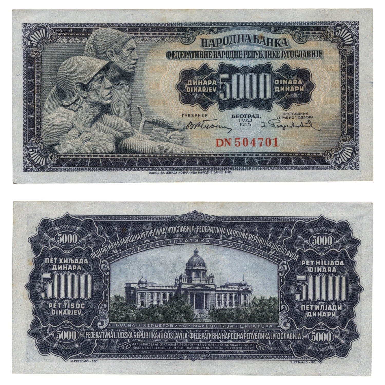 YUGOSLAVIA 5000 dinara 1955 XF-