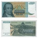 YUGOSLAVIA 500000 dinara 1993 / Error: extra paint near the inscription JUGOSLAVIA on reverse, so called “The Sun” / VF+