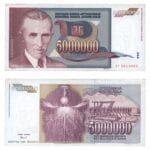 YUGOSLAVIA 5000000 dinara 1993 / Nikola Tesla / XF