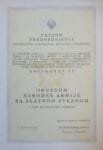 YUGOSLAVIA Diploma for the Order of People’s Army, 2nd class / blank / 300 mm x 210 mm / small size
