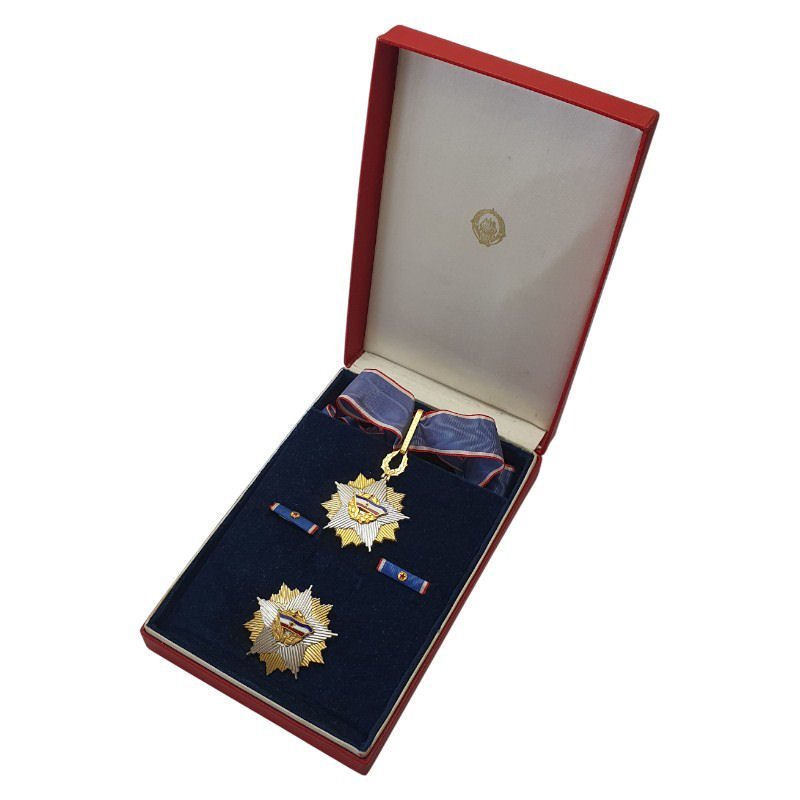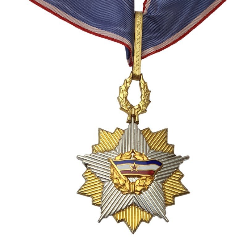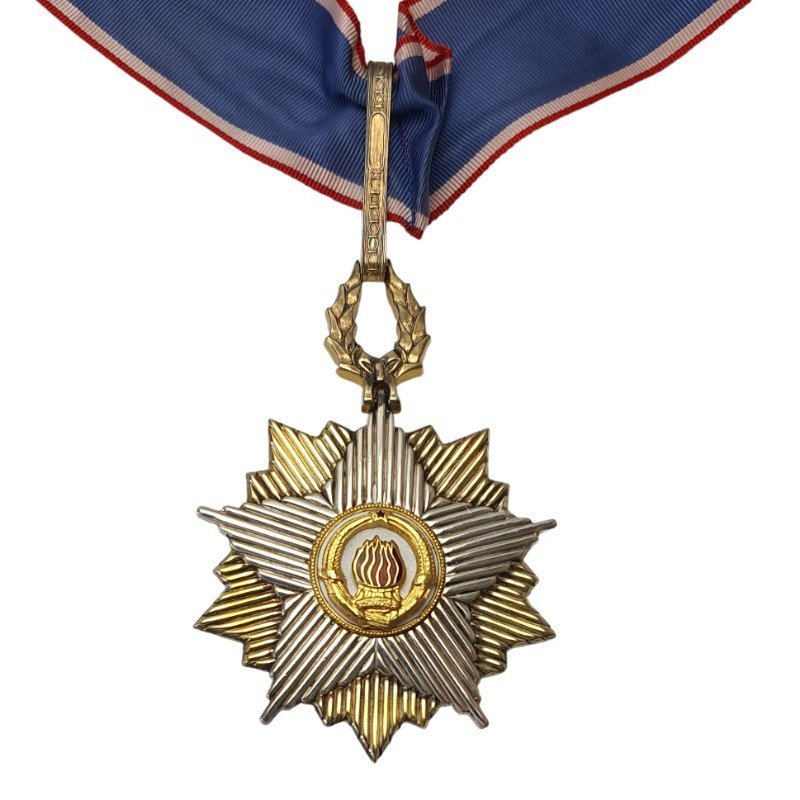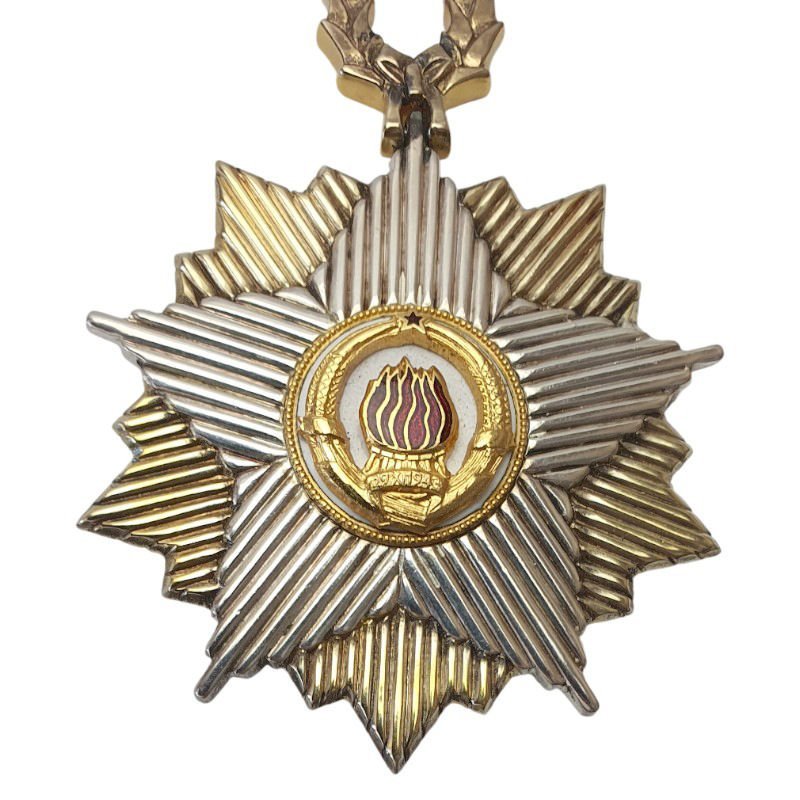 YUGOSLAVIA Order of Yugoslav Star with Golden Wreath, 2nd class, newer type flag, numbered, with countermarks for Silver, in original case